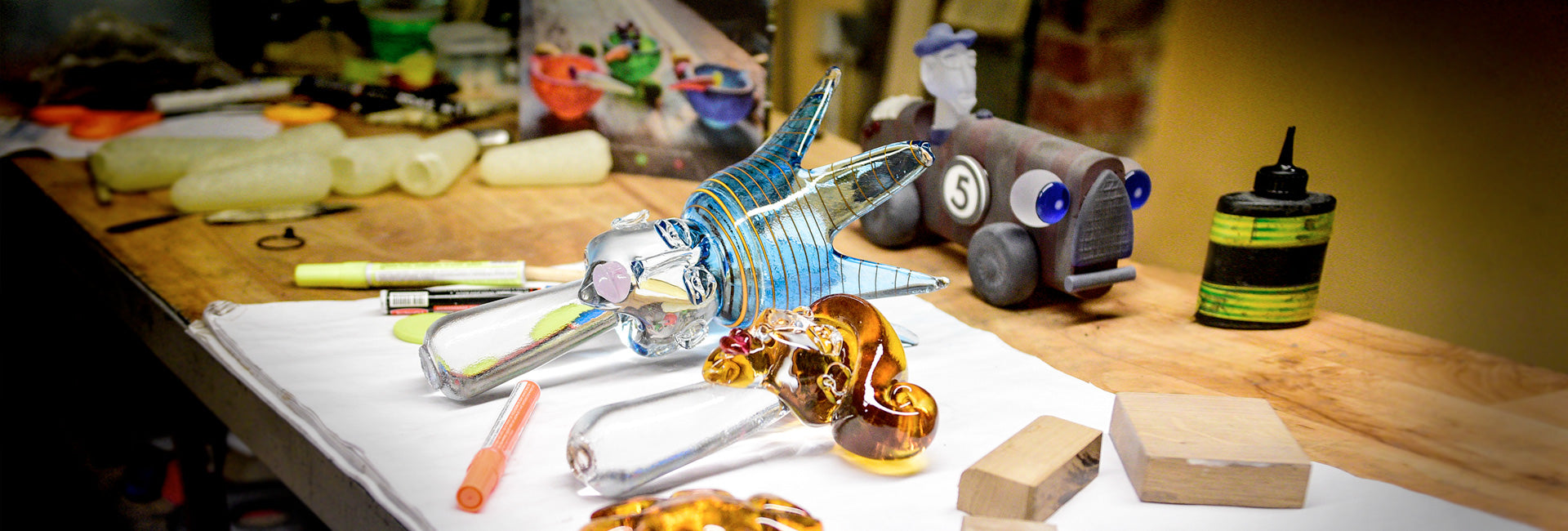 For today's glass manufacture for hand blown and hand crafted glass almost all known techniques for hot and cold glass processing can be used. This is unique in the world and enables the artists to realise challenging visions and constant new, experimental ideas.
