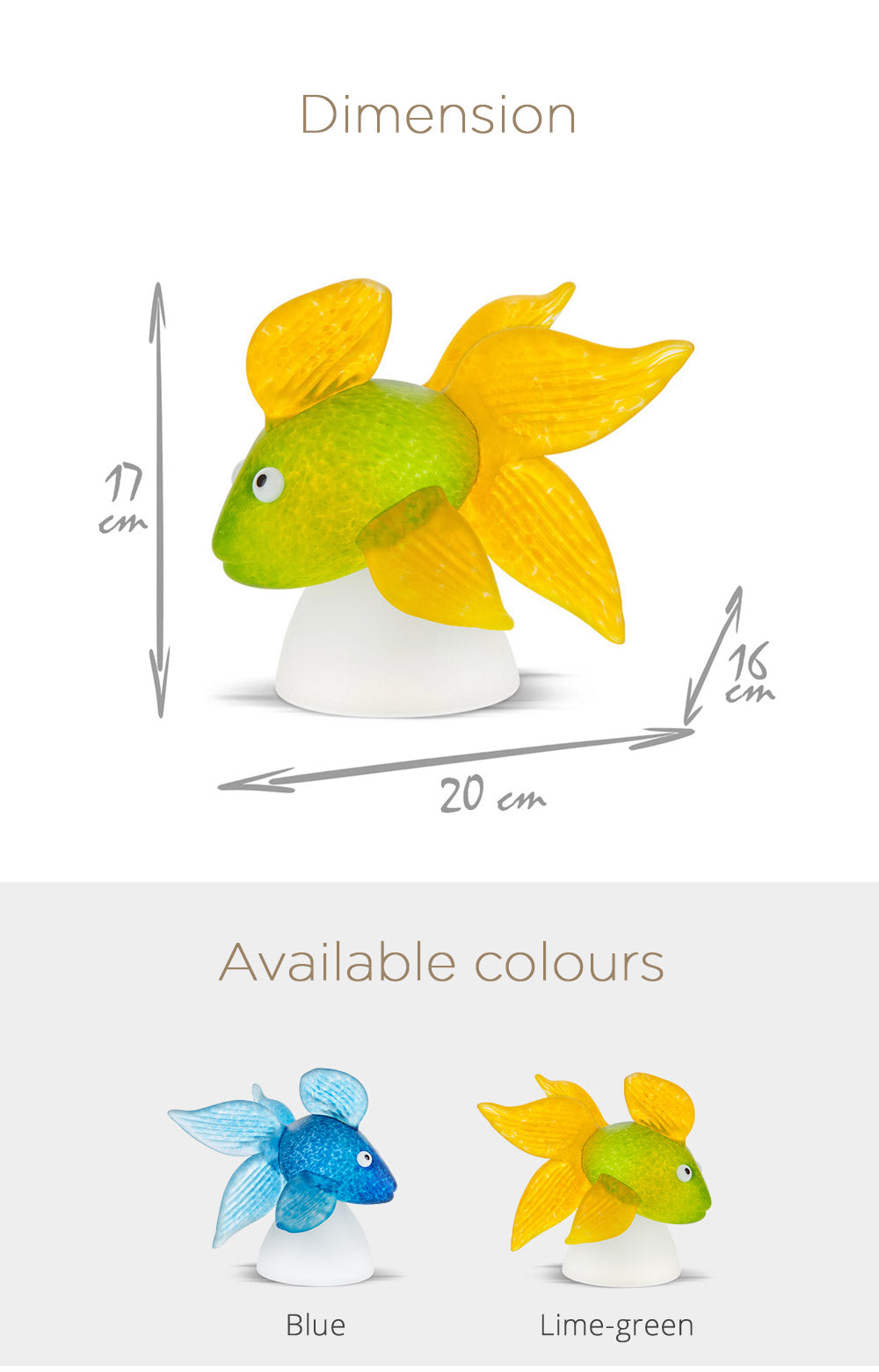 Although this fish is smaller than its cousins, Oranda is beautifully handcrafted to exude vitality. The fish also has many colors depending on the season and mood. Place this cute and adorable fish anywhere, and let the colors shine brightly amongst the waves of positive energy in your home.